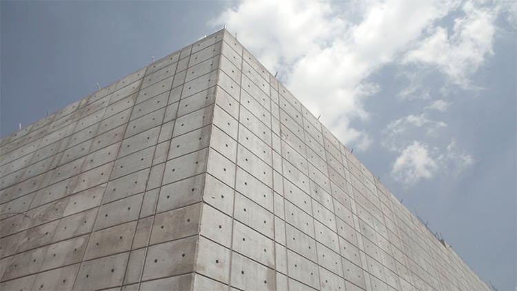 El resultado desarrollado para Grupo Santander es una estructura perimetral de 204 metros de longitud y 1.10 metros de espesor, con altura máxima de 10.30 metros. El diseño comprende dos muros de 50 y 20 centímetros de espesor respectivamente, separados por una cámara de aire de 40 centímetros. CEMEX México suministró 3,000 metros cúbicos de un concreto estructural de alta resistencia que cuenta con materias primas especiales que incrementan la resistencia al fuego. Además, sus características autocompactables, durables y curables, favorecieron la viabilidad económica y ecológica del proyecto.